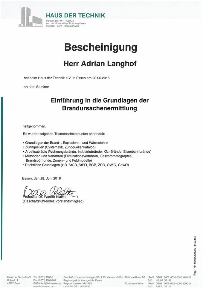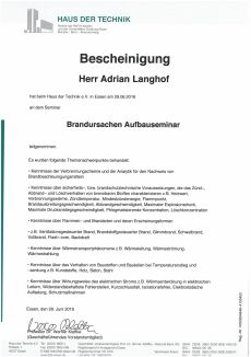 Schon lange reifte der Gedanke bei beiden, einen weiteren Leistungsschwerpunkt im Bereich des Brandschutzes zu setzen und unseren Kunden anzubieten. So absolvierte Adrian Langhof ein zweijähriges Master-Studium bei EIPOS an der TU Dresden zum Master of Engineering Vorbeugender Brandschutz und somit zum Sachverständigen im Vorbeugenden Brandschutz.